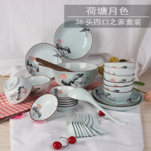 名流陶瓷餐具碗碟套装家用中式青瓷16头36头碟筷盘子碗套装组合