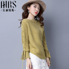 2016秋装新款女装潮 宽松一字领长袖上衣套头毛衣针织衫蝙蝠衫