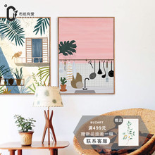 布纸有爱 鱼与猫 餐厅装饰画北欧客厅墙画画现代简约壁画卧室挂画