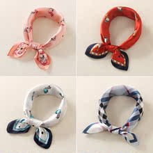 春秋儿童真丝围巾韩版小孩女童桑蚕丝丝巾婴儿宝宝小方巾卡通领巾