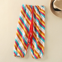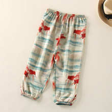 儿童真丝灯笼裤婴儿夏装桑蚕丝男童条纹长裤子女童宝宝防蚊睡裤薄