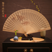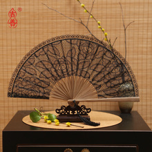 吉善新款雕花苏扇子黑檀乌木折扇女檀香扇中国风礼品送老外工艺扇