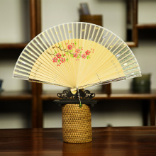 夏季中国风真丝扇子折扇日用扇手绘工艺扇古风竹扇折叠女扇6.5寸