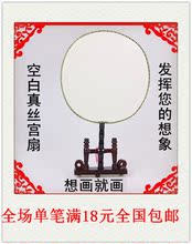 包邮厂家直销 空白防真丝宫扇 团扇 可题字 空白美术绘画扇子