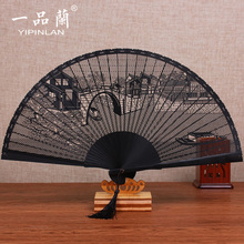 一品兰中国风黑檀木扇子乌木檀香木古风折扇镂空工艺外事礼品女扇