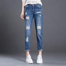春季大码高腰破洞哈伦直筒牛仔裤女学院风宽松韩国原宿九分裤女