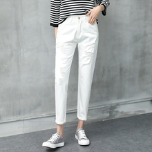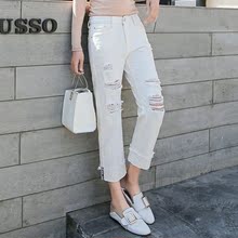 2017春装白色破洞牛仔裤女宽松九分裤显瘦乞丐裤百搭学生韩版潮裤