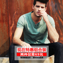 买一送一2017新款男士V领纯棉短袖韩版修身t恤打底衫大码半袖青年