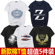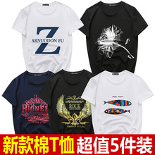 买一送四 夏季新款男士短袖t恤青少年圆领修身半截袖日系印花半袖