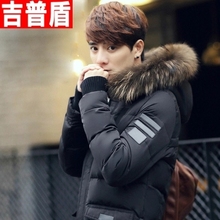 2016新款男士超大毛领羽绒服韩版修身中长款青年加厚外套吉普盾