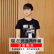 买一送三 夏季新款男士短袖t恤圆领修身打底衫青少年大码印花半袖