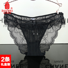 达莎帝克2条装蕾丝女内裤 纯棉裆低腰性感透明诱惑无痕女士三角裤