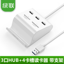 绿联USB读卡器+usb3.0分线器二合一SD卡TF读卡器多功能USB扩展器