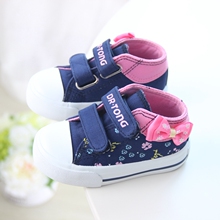 新款女宝宝婴幼儿软底高帮帆布鞋可爱蝴蝶儿童鞋春秋板鞋1-2-3岁