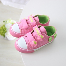 外贸女宝宝婴幼儿软胶底帆布鞋子软底草莓儿童鞋春秋板鞋1-3-6岁