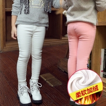 童装女童加绒加厚纯色中大童打底裤儿童修身外穿小脚铅笔裤牛仔裤