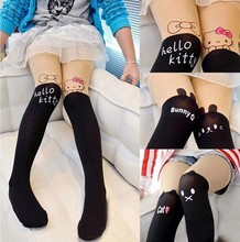 2016新款百搭女童袜子 猫咪儿童中筒袜 春秋款拼网纱女孩袜子 特