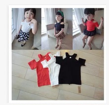 2017夏装韩版纯棉打底衫 露肩膀女童短袖T恤 宝宝儿童T恤 夏