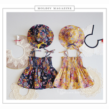 包邮miu妈定制夏装新款Ronoel女童小童宝宝印花吊带连衣裙带帽子