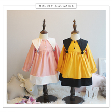 包邮miu妈春装新款韩版女童小童宝宝可爱三角领拼色连衣裙裙子