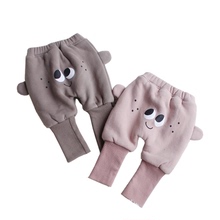 miu妈小铺秋冬装新款韩版女童小童宝宝可爱中性夹棉哈伦裤长裤