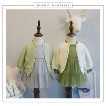 miu妈春装新韩版女童小童宝宝蝴蝶结灯笼袖针织开衫毛衣坎肩外套