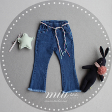 miu妈春装新款韩版小童女童宝宝时髦毛边喇叭裤牛仔裤送腰带0-4岁