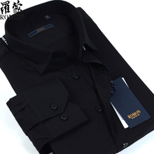 罗蒙男士长袖衬衫春秋商务休闲男正装纯黑色格子职业工装时尚衬衣