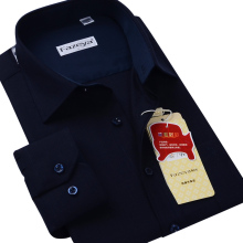恒源祥春季男士长袖衬衫纯色商务休闲正装职业工装中年藏蓝色衬衣