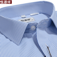 恒源祥衬衫男长袖商务中年男装时尚蓝色小格子爸爸装男士休闲衬衣