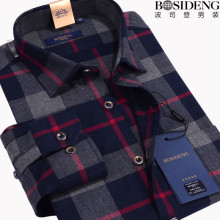 波司登男装秋季格子长袖衬衫商务休闲男士磨毛纯棉红色格子衬衣