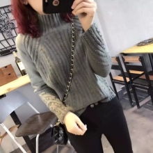优雅气质钉珠半高领螺纹针织开叉柔软质感秋冬女 宽松套头毛衣