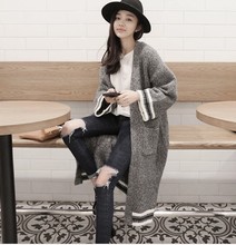 2016韩国春装复古宽松毛衣大码针织衫羊毛长款开衫毛衣外套女潮