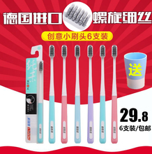 倍加洁小头螺旋刷丝竹炭软毛情侣成人家庭装细毛牙刷6支装包邮