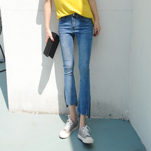 金富客牛仔喇叭裤修身九分裤2017春季新款韩版高腰开叉显瘦微喇裤
