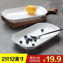 天天特价 大号2只装 12英寸长方深鱼盘家用碟 耐高温可蒸烤微波