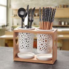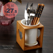 简约竹木筷子筒 沥水筷子盒 陶瓷韩式创意筷子架 防霉筷子笼骨瓷