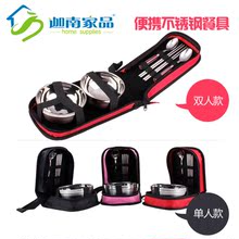便携餐具组合套装不锈钢碗筷勺环保旅行便当包学生午餐饭盒单双款