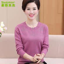 中老年女装春装打底衫大码妈妈装针织衫长袖中年女装毛衣圆领上衣