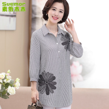中老年衬衫女长袖40-50岁妈妈装夏装雪纺T恤中年女装春装大码上衣