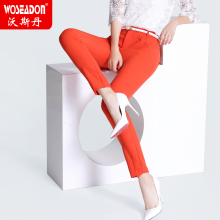 沃斯丹女裤2016春夏新款通勤糖果色九分裤女韩版中腰小脚休闲裤子