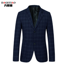 春秋男士西装中老年男加大码休闲中年男装外套爸爸装格子单件西服