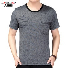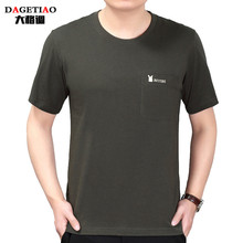 夏季中老年男装圆领t恤纯棉男士口袋短袖宽松纯色大码薄款爸爸装