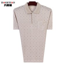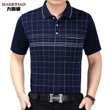 夏季中年男士短袖t恤纯棉常规口袋40-50老年大码翻领半袖薄款上衣