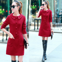 2017春季大码春款毛呢连衣裙韩版气质修身中长款长袖A字打底裙女