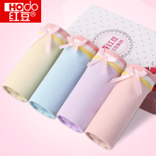 红豆女内裤纯色棉质三角内裤中腰可爱蝴蝶结棉质面料少女三角裤头