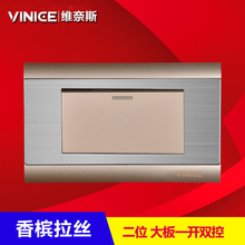 维奈斯不锈钢拉丝开关插座118型面板金色 二位大板一开双控开关