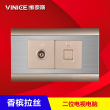 维奈斯118型不锈钢拉丝墙壁开关插座面板 二位电视带电脑插座连体