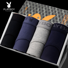 花花公子男士内裤青年棉质平角裤四角中腰宽松u凸设计性感裤衩
