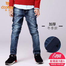 男童弹力牛仔长裤加绒加厚款秋冬款多力童 男儿童裤子大童牛仔裤